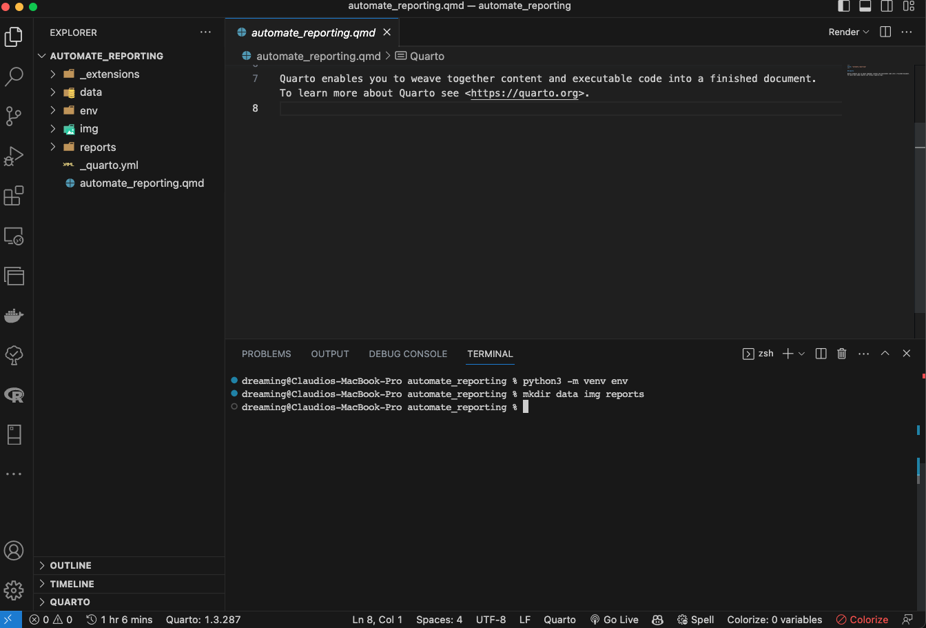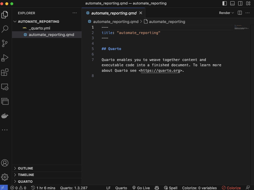 As you can see we have 2 files. _quarto.yml and automate_reporting.qmd.