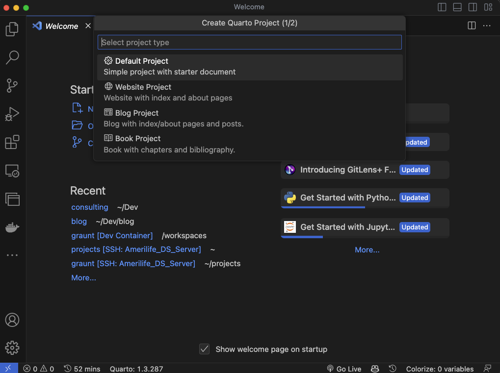 We first need to set things up. For the purpose of this article, we will be using VSCode with Quarto to develope this project.